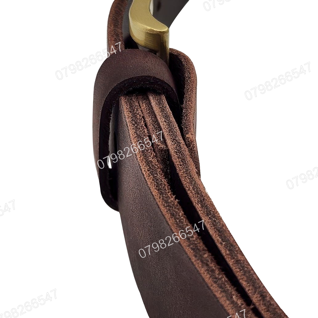 Da bò sáp nguyên miếng 1 lớp phủ sáp mỏng tăng độ bền, mặt dưới ép sát lông ít ra mạt, giữ form cứng chắc. Đầu khóa kim hợp kim 4cm, dây dài 110cm rộng 3.6cm, đục sẵn 5 lỗ tiện điều chỉnh. Thiết kế trơn nam tính phù hợp quý ông trung niên, dễ phối đồ da bò sáp. Có 2 màu nâu sáng và nâu đậm linh hoạt mix đồ.